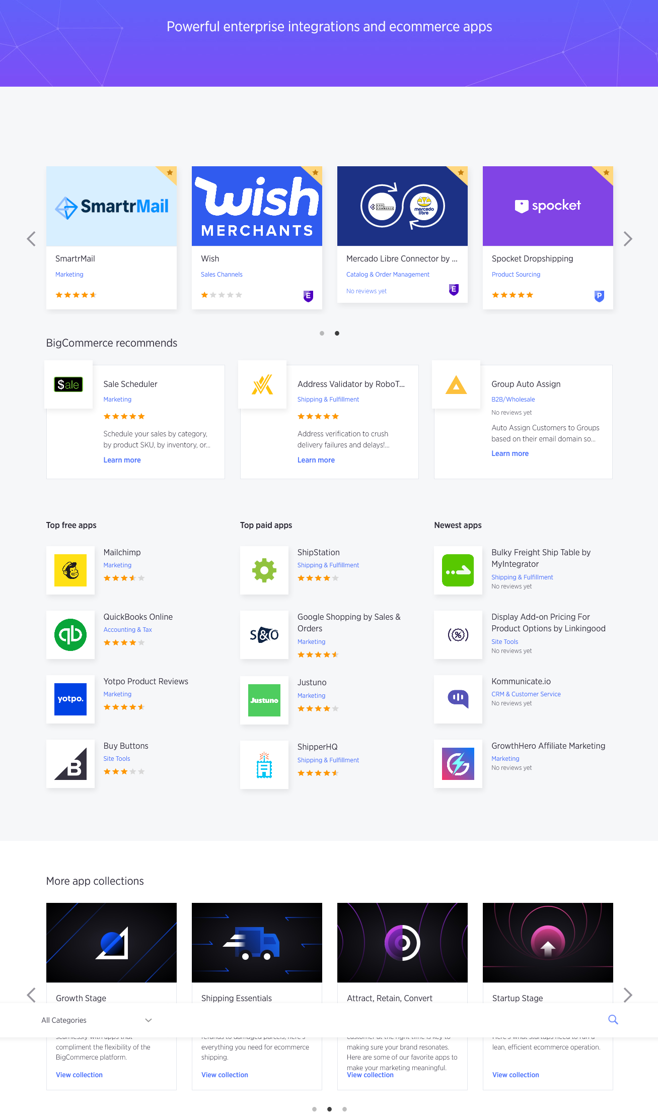 The robust integration capabilities of BigCommerce extend into a thriving ecosystem consisting of numerous applications and services. The extensibility of the API powers a wide array of third-party integrations created by both BigCommerce and partnered technology companies. Some notable benefits of this ecosystem include: