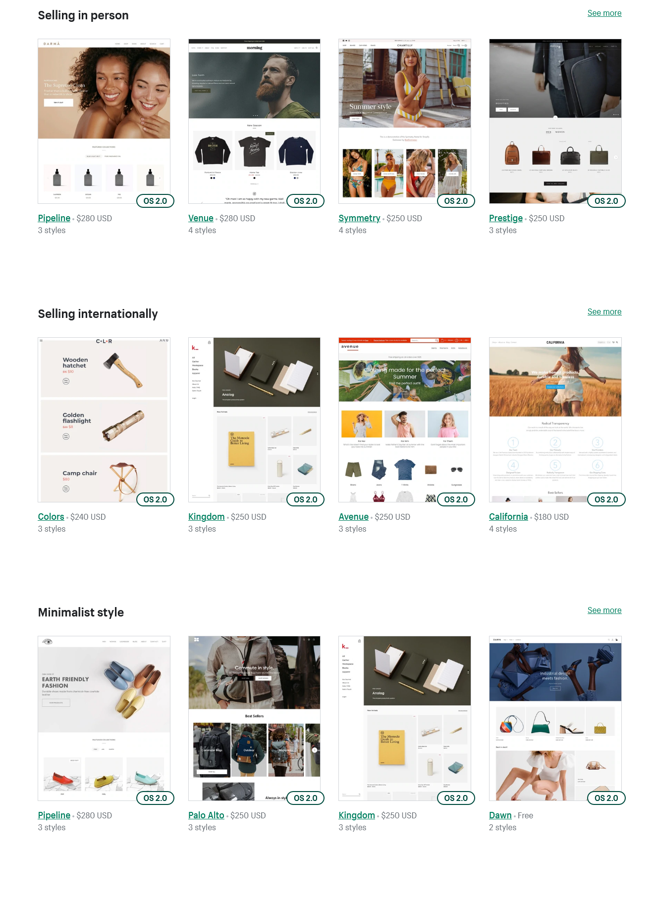 - Free and paid themes from the Shopify Theme Store to make your store stand out and look great