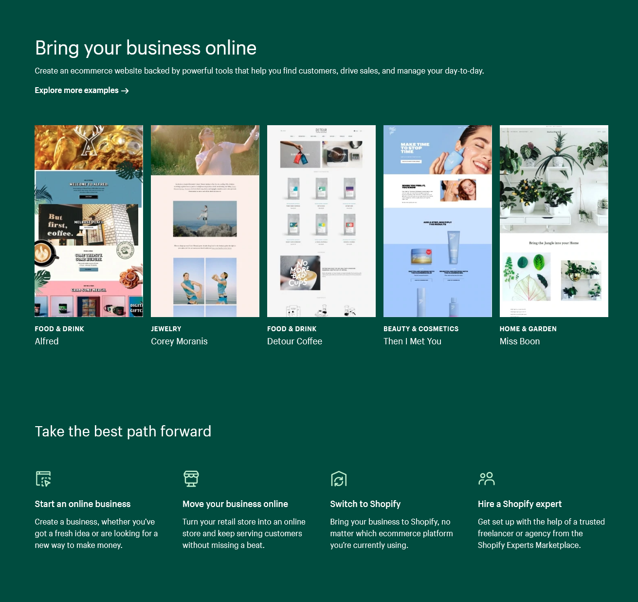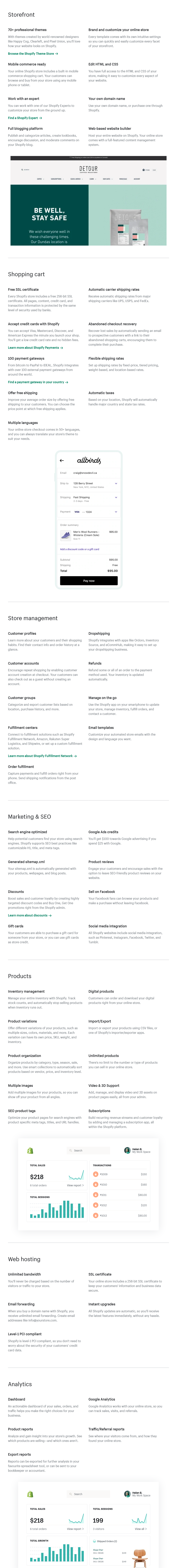Depending on the pricing plan that you choose, you can find everything you need to showcase your products online, to process payments, and to make your store work for you. Shopify offers:
