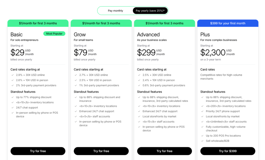A Comprehensive Guide to Shopify’s Pricing Plans: Basic, Grow, Advanced, and Plus
