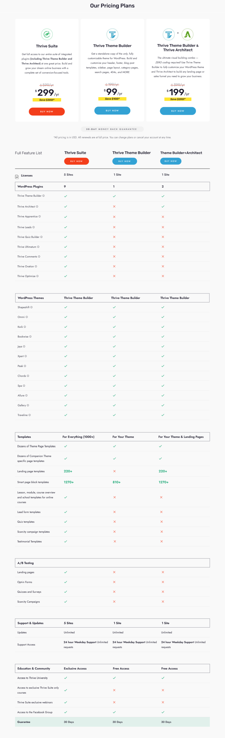 All Thrive Themes plans come with a 30-day money-back guarantee, so you can try them out risk-free.